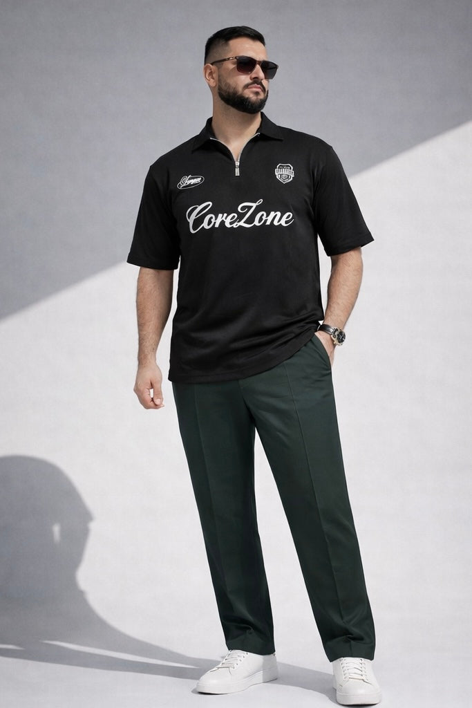 MENS ZIPPER CORE ZONE ZIPPER POLO CORD SET| BLACK GREEN